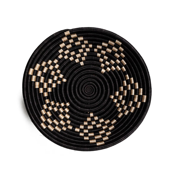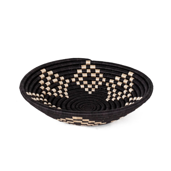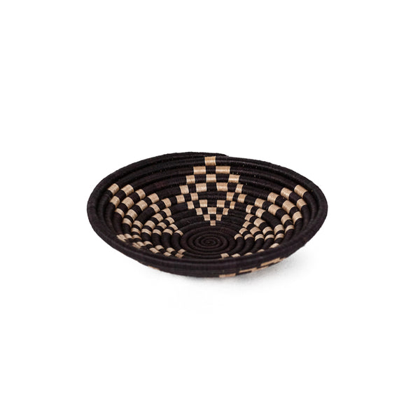 All of our woven bowls are created from dyed natural sisal fibers woven over a core of forest grasses. The weavers begin in the middle of the basket, carefully threading the sisal around and around to create this beautiful design. The tea color is created when the naturally-white sisal fibers are steeped in Rwandan-grown tea leaves!