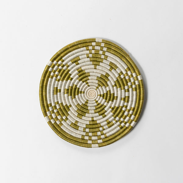 Each trivet begins with the gathering of forest grasses and large sisal leaves. Once the sisal fibers have been extracted from the leaf, cleaned, dyed, and dried, the artisans are ready to begin. The sisal fibers are threaded around and around a core of forest grasses, the design taking shape bit by bit. In the end, you have a beautiful and useful addition to your dinner table. \n \nHand woven trivets also make a lovely housewarming gift. Pair one with a set of coasters or napkin rings for a fun and memorable wedding present. \n \nCome and meet the weavers of your trivet in their feature profile. They are skilled and determined women! \n