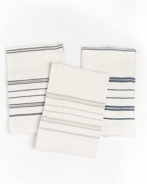 Handwoven from our signature Ethiopian cotton, the Avery Tea Towel collection features classic stripes and a clean sewn edge. Each towel measures approximately 16" x 25" of ultra-soft hand-spun cotton that will become even more absorbent with each wash and dry. Perfect in every kitchen, these tea towels are the ultimate gift for your favorite host or new home owner. Plus, they're machine washable!