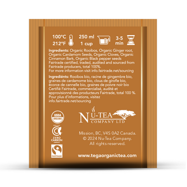 Rooibos Leaves, Ginger, Cardamom, Cloves, Cinnamon, Black Pepper.